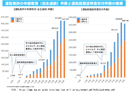 一方、2018年に運転免許を自主返納したのは、約42.1万人(75歳以上が29.3万人)と、2年連続で40万人を超えました。