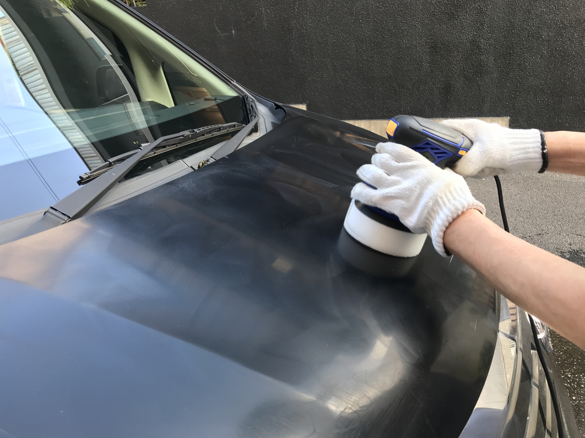 研磨剤は手で使用できるものもありますが、一般的にはポリッシャーと呼ばれる機械で行います。またポリッシャーにも回転式シングルポリッシャーや振動を利用したダブルアクションなどの種類があります。慣れないとムラになったり機械に振り回されることがありますので、どこかで練習をしてから本作業をしたほうが良いと思います。