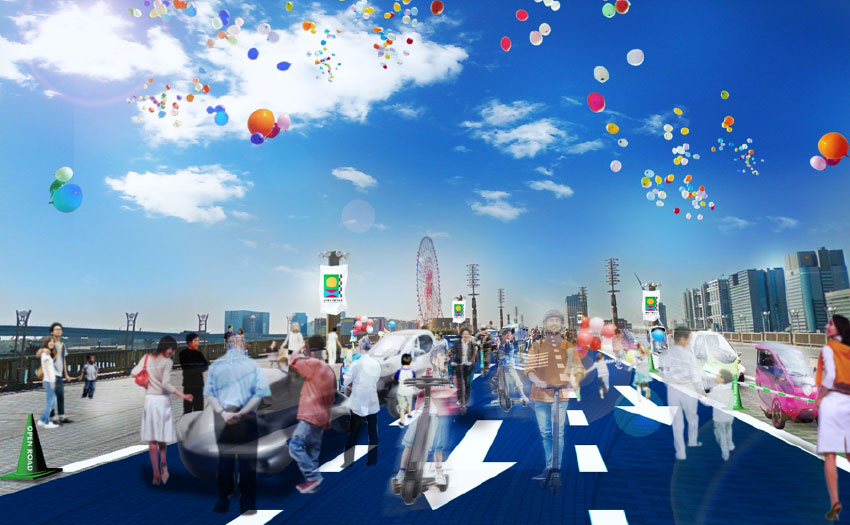 会場の移動には、夢の大橋を利用した「OPEN ROAD」が設けられていて、近未来を感じるモビリティに試乗が可能で、電動キックボード、パーソナルモビリティ、超小型モビリティなどを体験することができます。