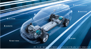電気自動車(EV車)に近づけるため、より高出力のモーターを備え、よりバッテリーの容量を増やす工夫が施されています。