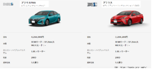 従来モデルのプリウスとプリウスPHVをトヨタのサイトで比べると、下のようになります。